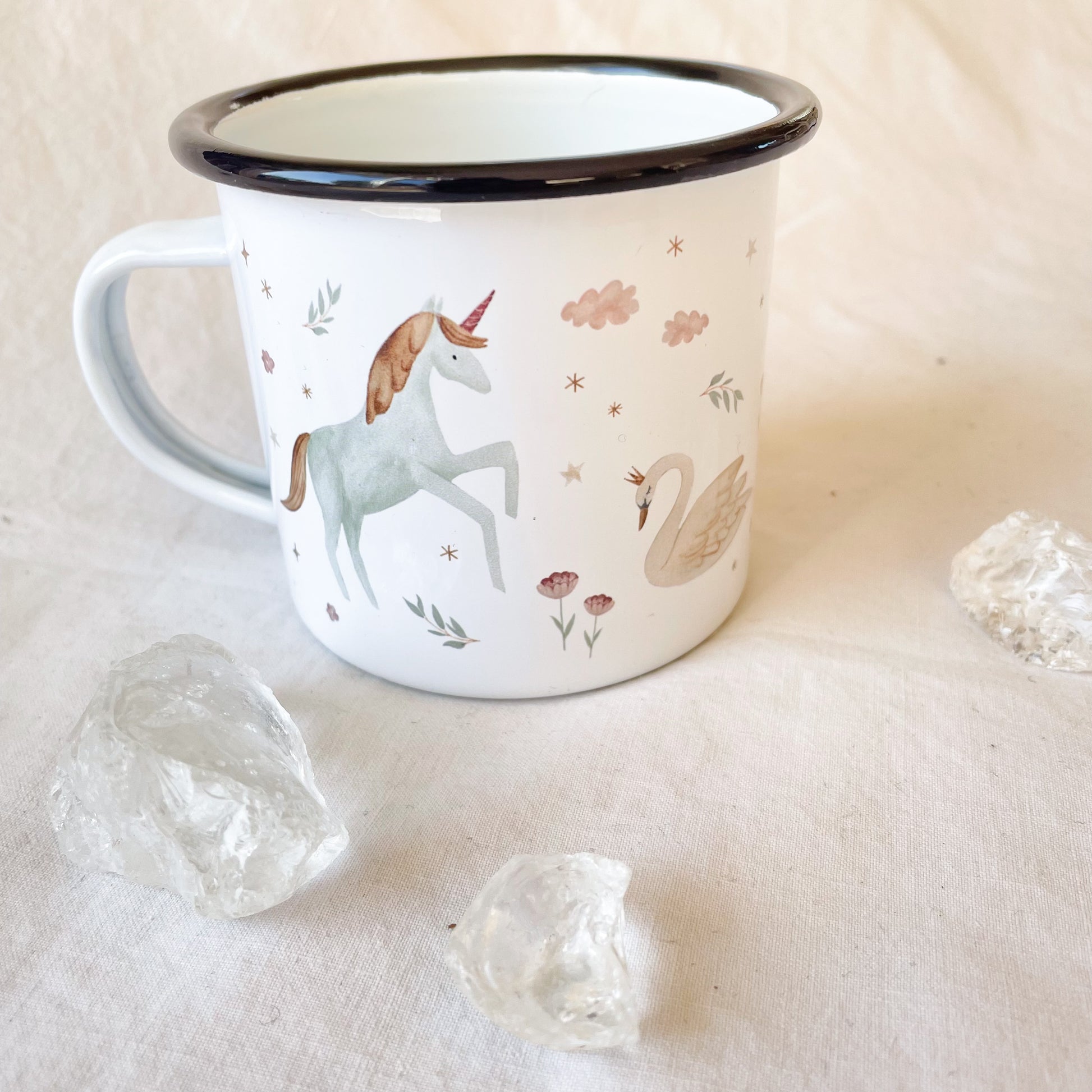 Die perfekte Tasse für dein Kind: robust und einzigartig. Jede unserer Emaille-Tassen ist mit meinen exklusiven, handgezeichneten Illustrationen gestaltet, die Kinderaugen zum Leuchten bringen. Die kindgerechten und fröhlichen Motive sind nicht nur schön anzusehen, sondern beflügeln auch die Fantasie. Eine praktische und zugleich wunderschöne Tasse, die den Alltag deines Kindes bereichert.
