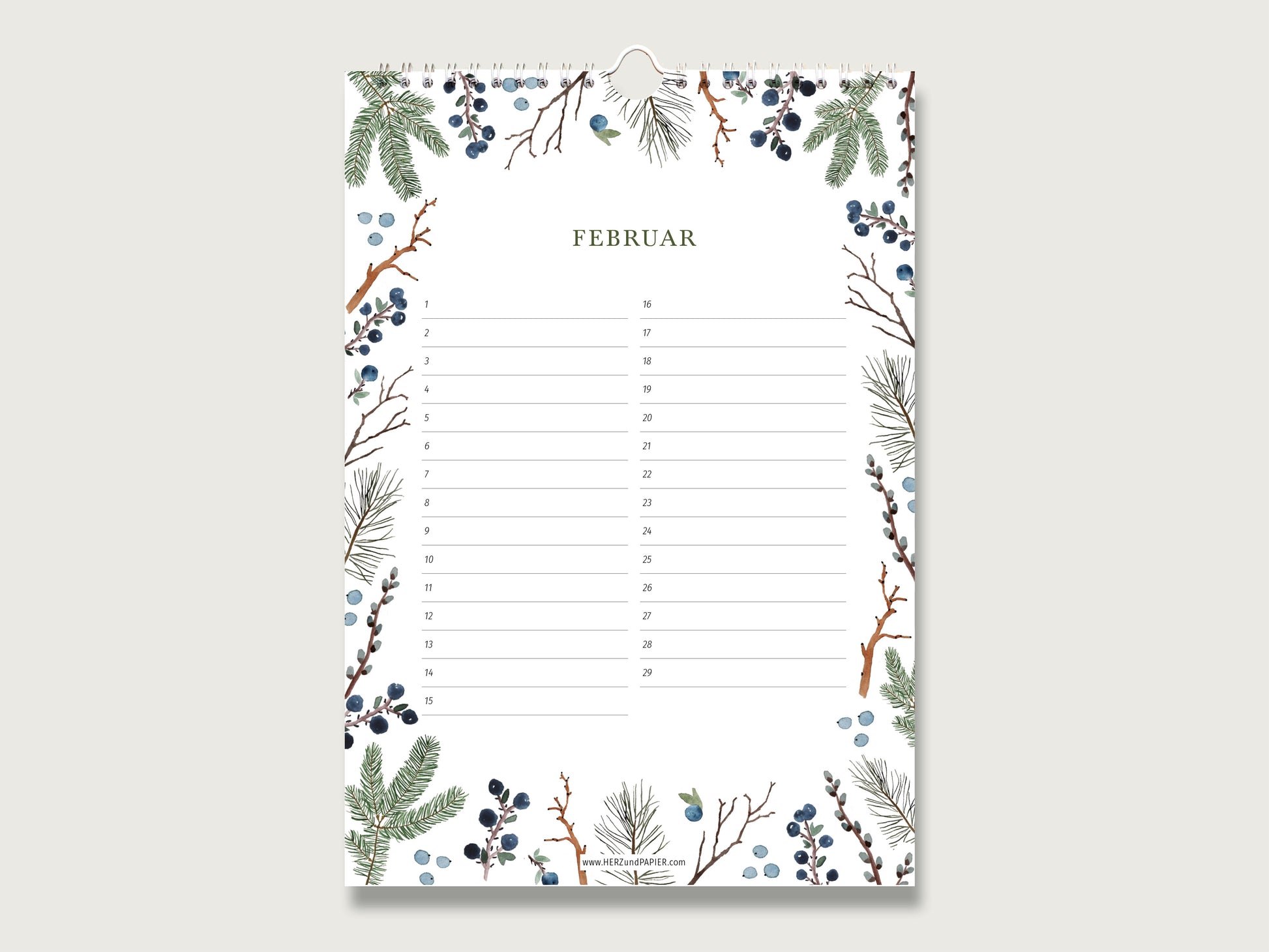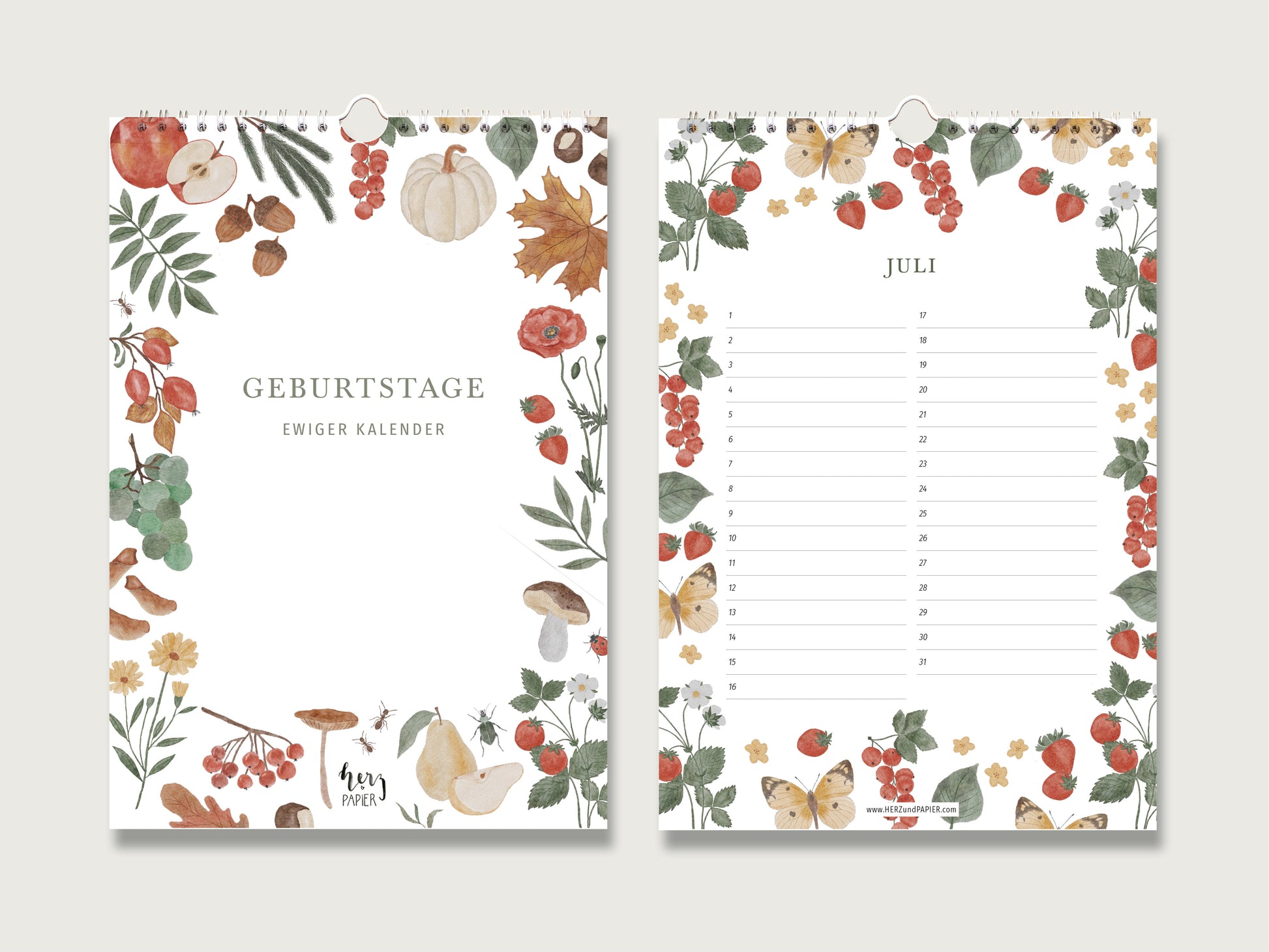 In der Mitte ist ein immerwährendes Kalendarium, also ohne Zahlen. Es eignet sich perfekt um Geburtstage, Hochzeitstage etc einzutragen und sie immer parat zu haben.