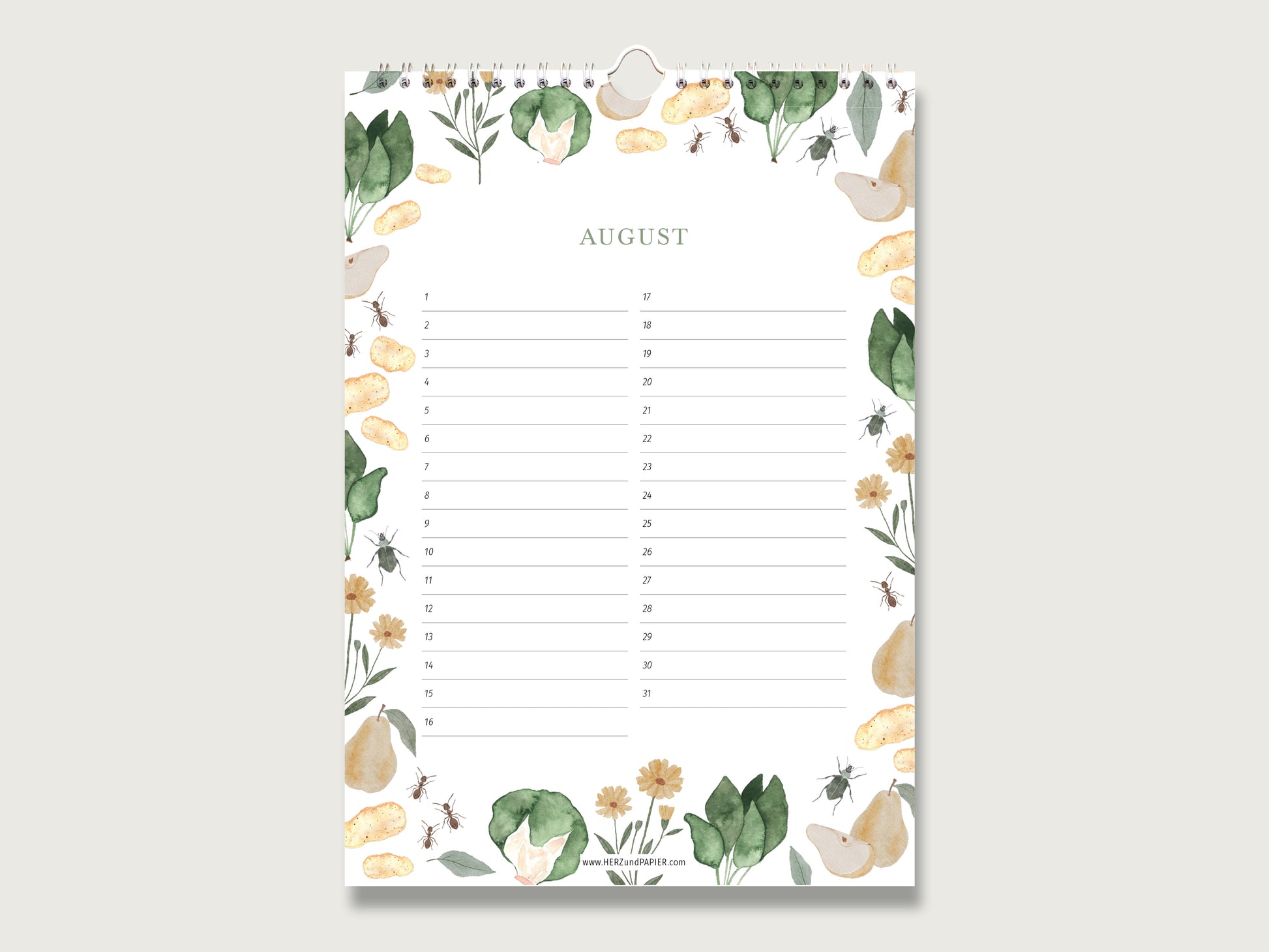 Die Motive sind thematisch auf den jeweiligen Monat abgestimmt. Dabei kommen Tiere, Pflanzen, Insekten, Blätter, Äste und noch so einiges mehr zur Geltung.