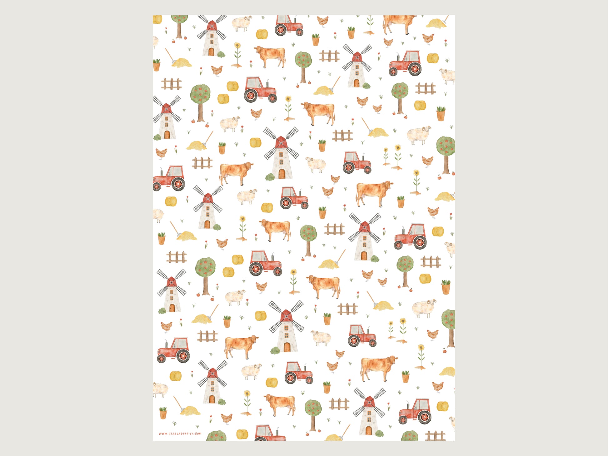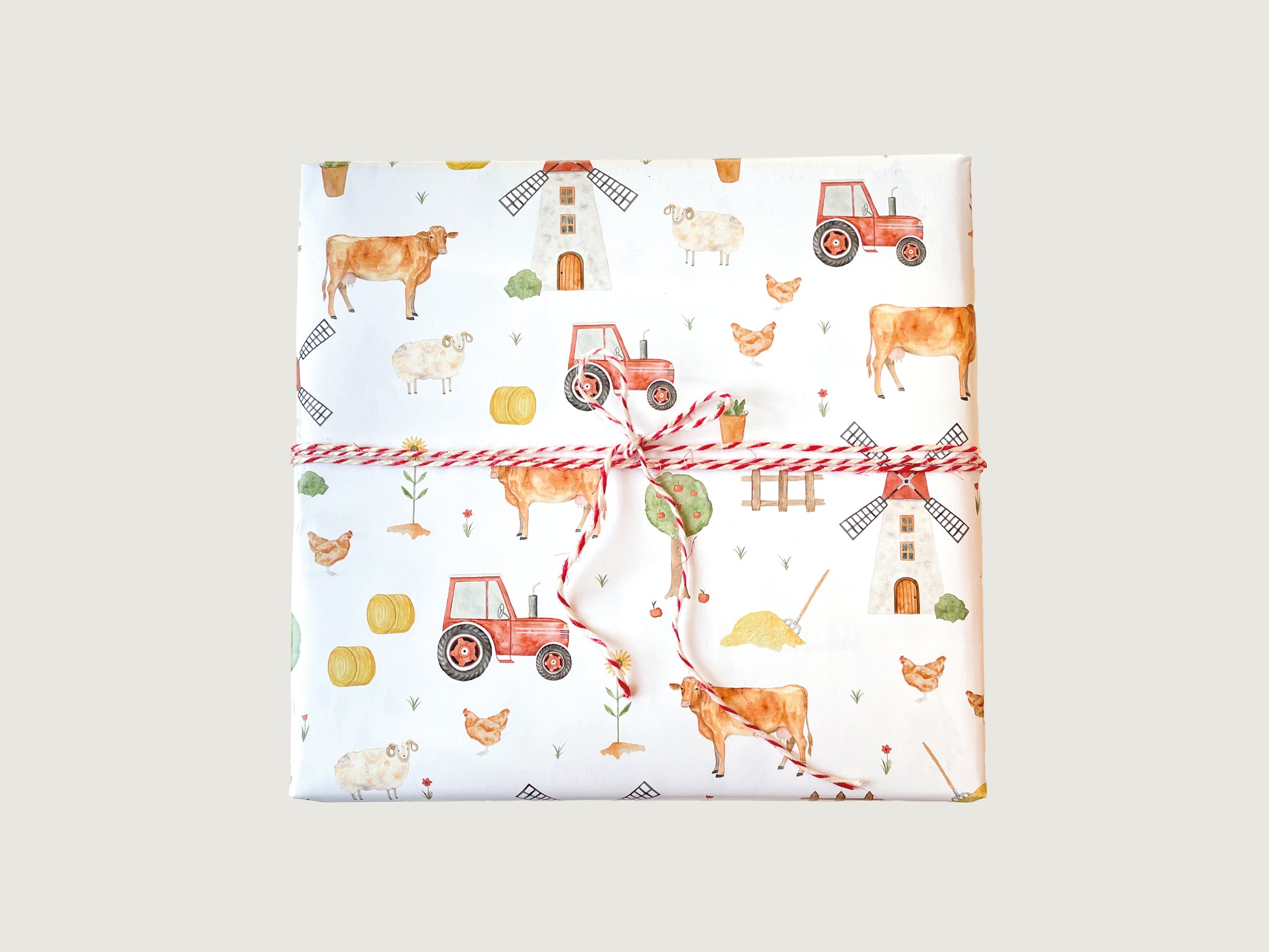 Liebevoll illustriertes Geschenkpapier mit handgemalten Motiven.