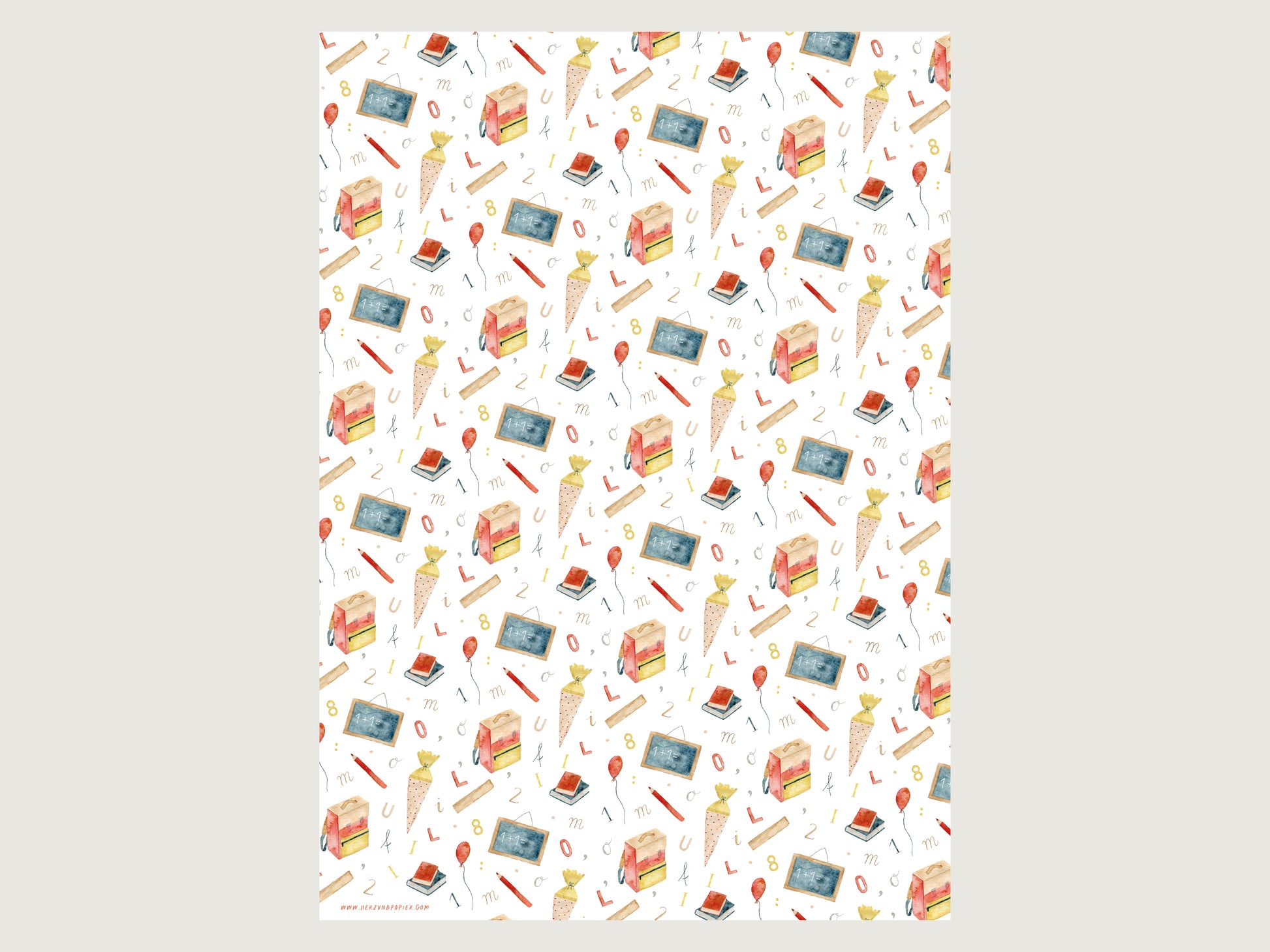 Liebevoll illustriertes Geschenkpapier mit handgemalten Motiven.
