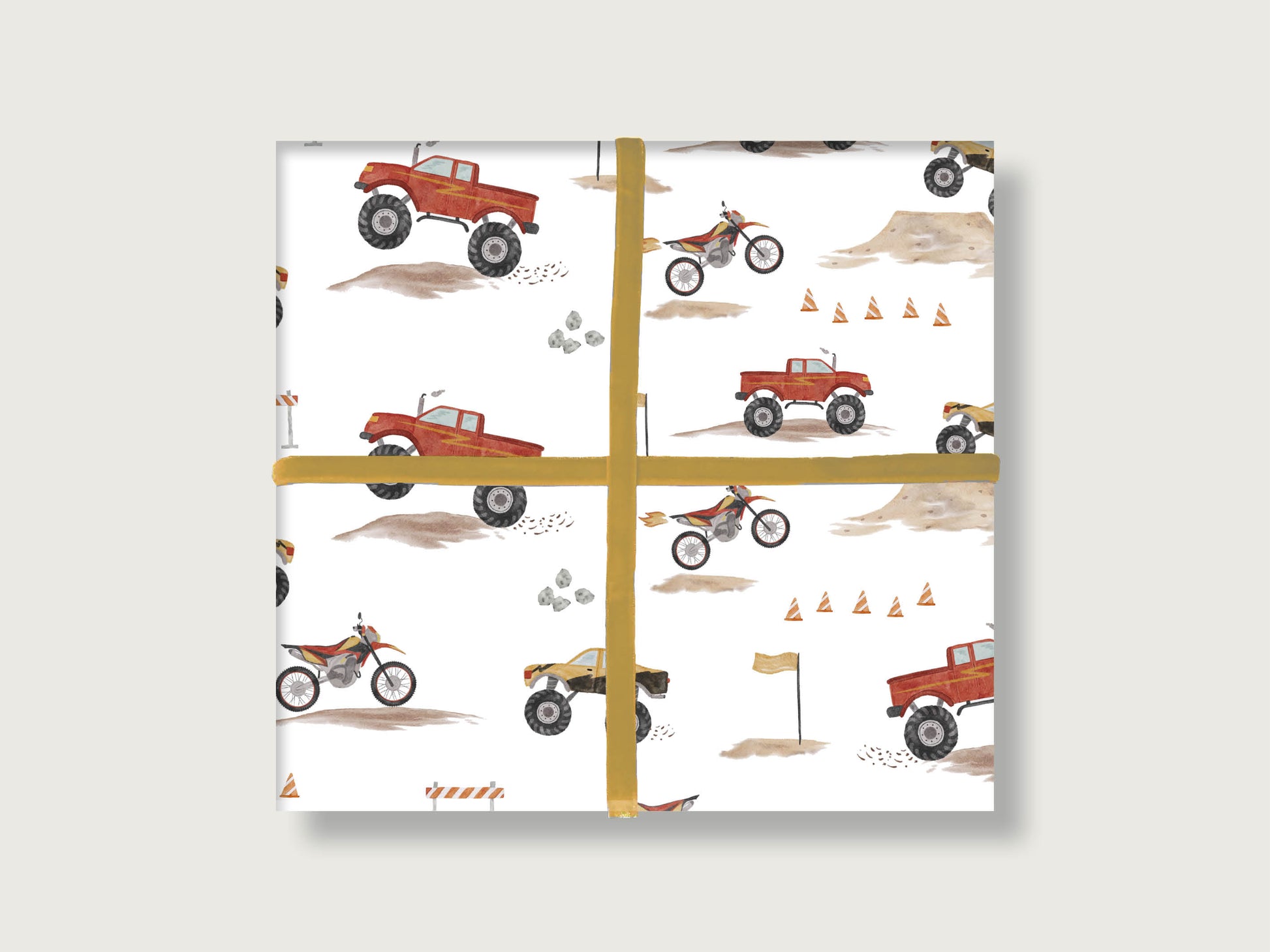 Liebevoll illustriertes Geschenkpapier mit handgemalten Motiven.