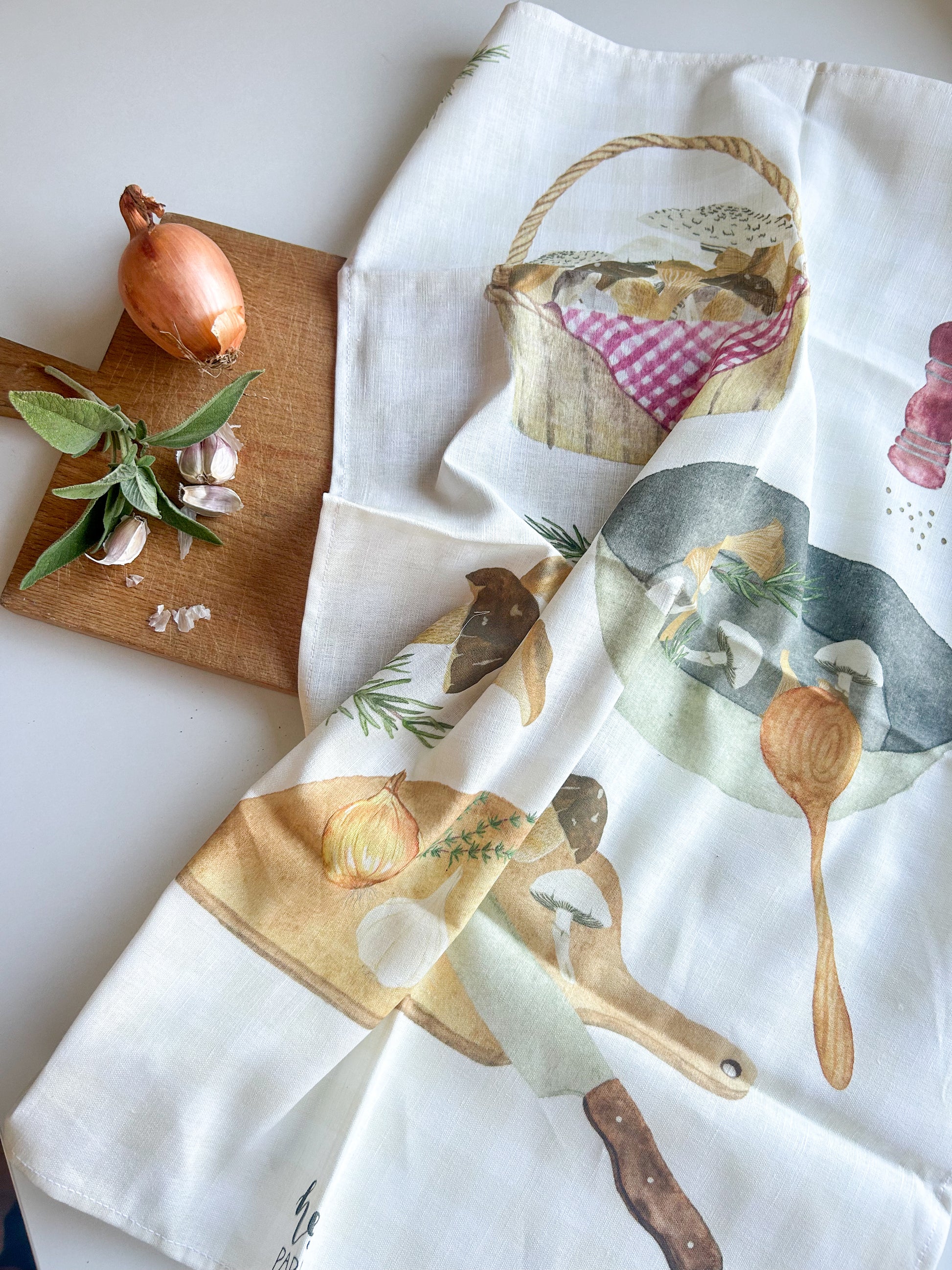 Geschirrtuch "Pilzpfanne" aus Leinenmix