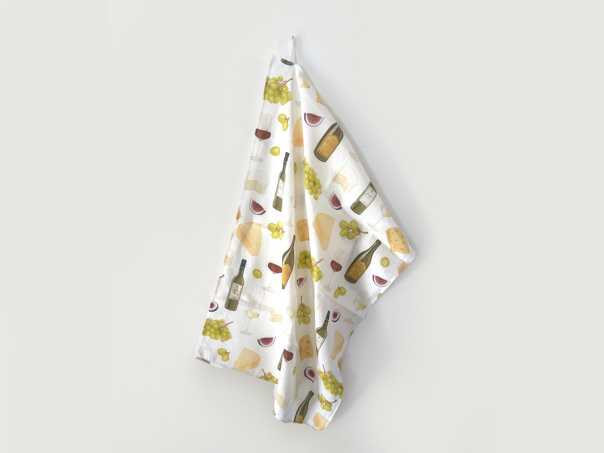 Geschirrtuch "Wein und Käse" aus Leinenmix