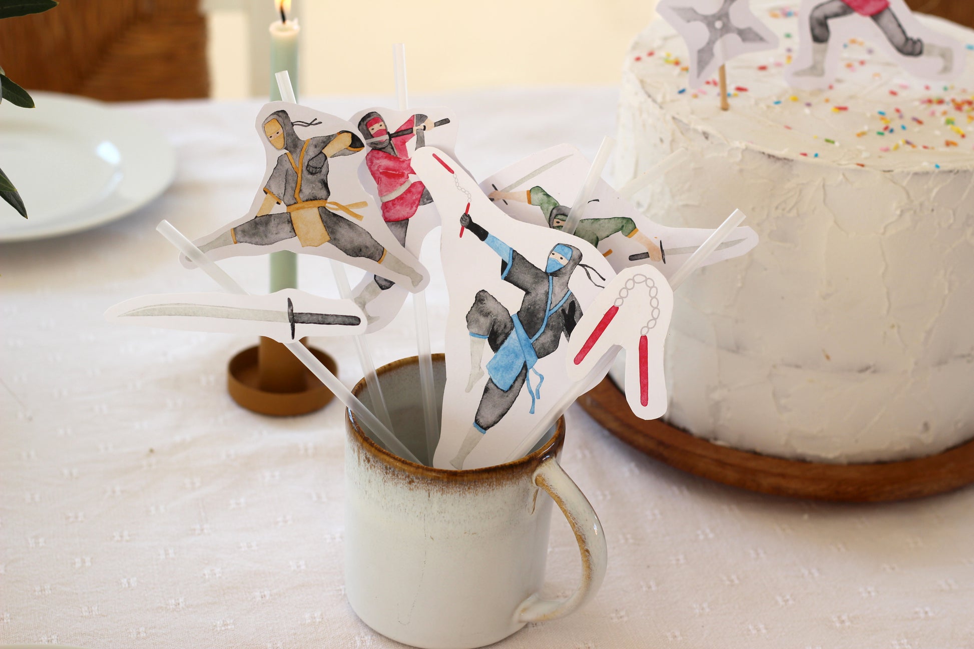 - 2 Din A4 Bögen mit kleineren Motiven. Die Motive müssen ausgeschnitten werden und können z.B. als Cake Topper, für Strohhalme oder als Streudeko genutzt werden. Auf beiden Bögen sind die gleichen Motive enthalten, allerdings spiegelverkehrt, damit du die Möglichkeit hast die Topper von vorn und hinten zu bekleben. 10 Bambusstäbe werden mitgeliefert.