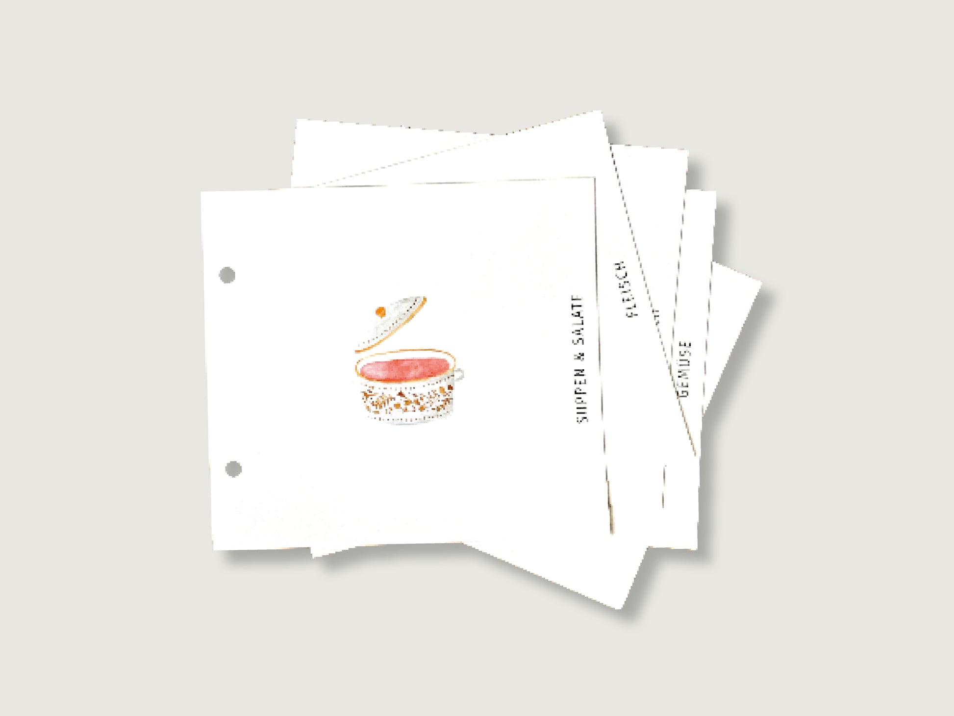 Set aus 6 Registerblättern für Rezepte im Din A4 Format.