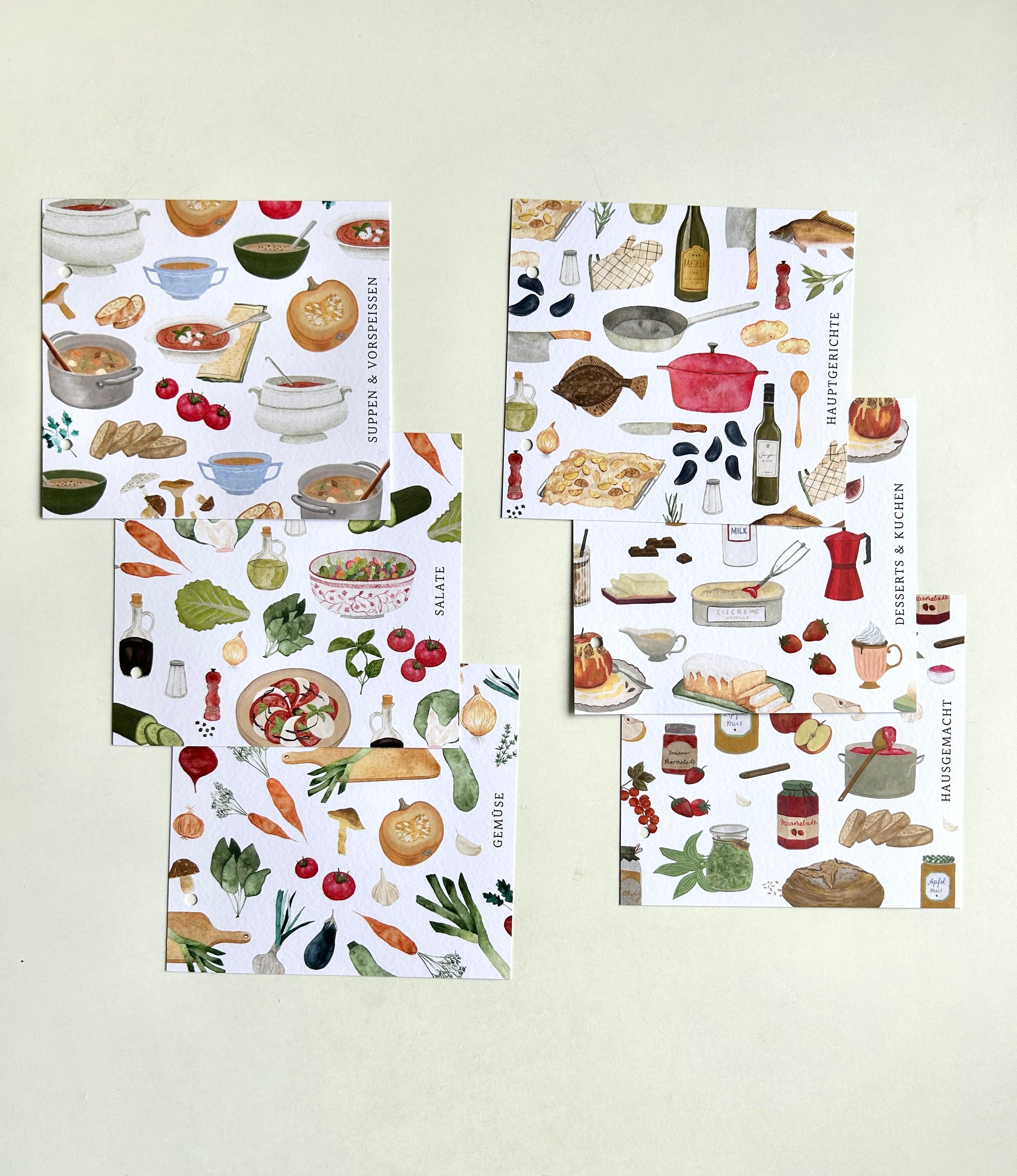 Set aus 6 Registerblättern für Rezepte im Din A5 Format.